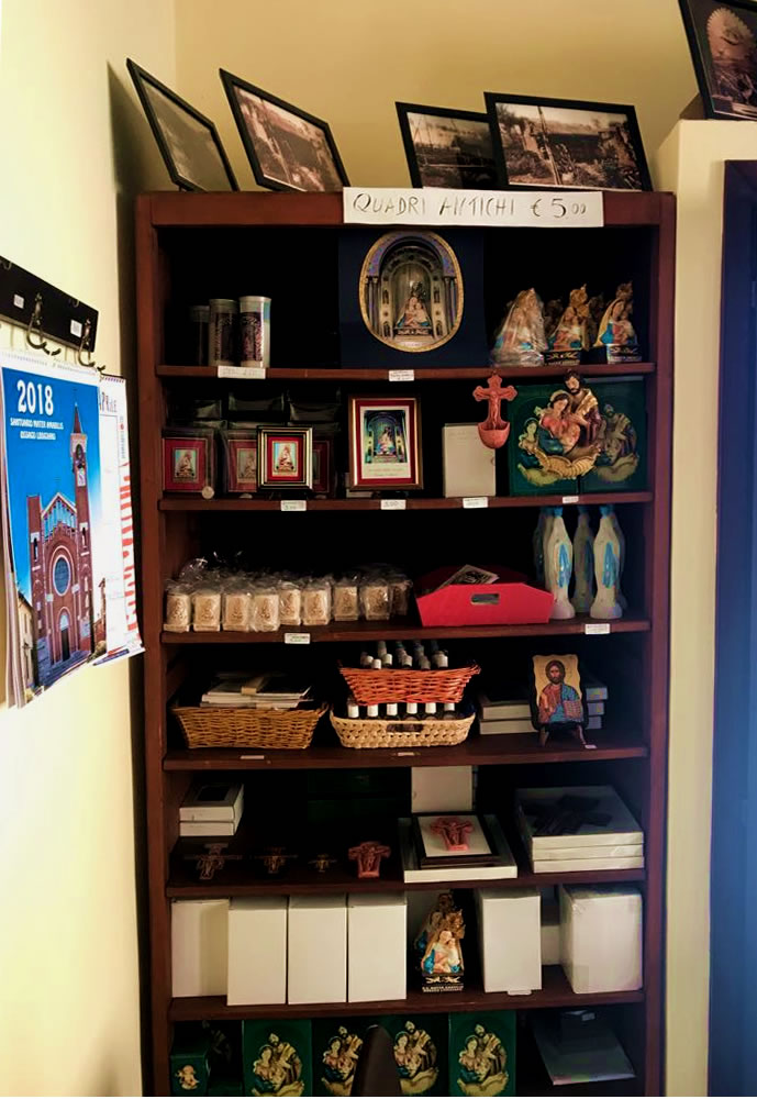 All’interno degli ambienti del Santuario è presente la cancelleria dove oltre che prenotare le Sante Messe e benedizioni si possono acquistare oggetti di pietà legati alla devozione del Santuario.