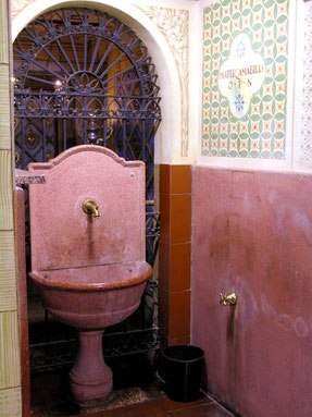 Al centro della galleria si trova la fonte di acqua benedetta a cui i pellegrini e devoti possono attingere.